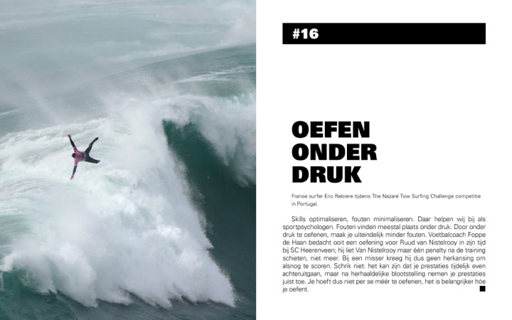 Lessen uit de topsport voor jong én oud: om je optimaal voor te bereiden te presteren als het moet en te herstellen als je dat hebt verdiend. Leer van Michael Jordans schoen, de tong van Boris Becker en de zwembril van Michael Phelps. Haal inspiratie uit een lachende Roger Federer en ontdek wat talloze sportpsychologen en -wetenschappers over topsport te weten zijn gekomen. Zo kun je beter yoghurt over je hoofd gieten als je succes wil hebben en heeft een winnend schip niet 1 maar 4 kapiteins nodig.